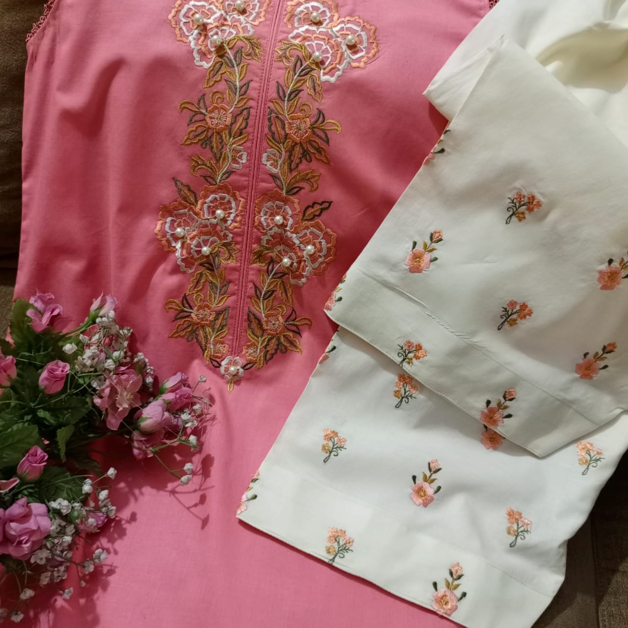 Aabyaan Blush Petals: Embroidered Cutwork Lawn Suit