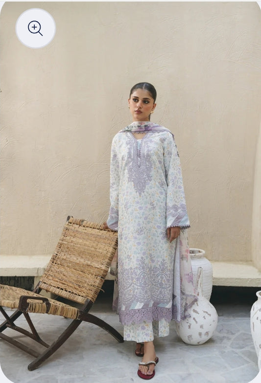 Aabyaan Lilac Meadow: Embroidered Printed Lawn Suit with Floral Dupatta