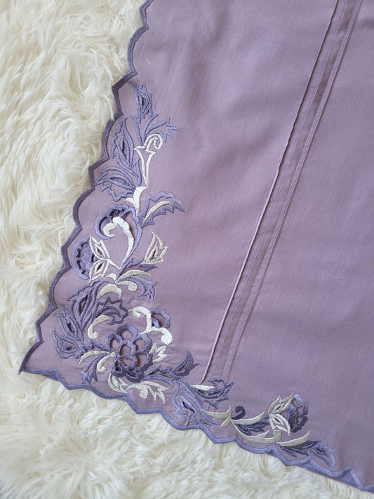 Lilac Bloom Embroidered Cambric Suit with Cutwork Detail