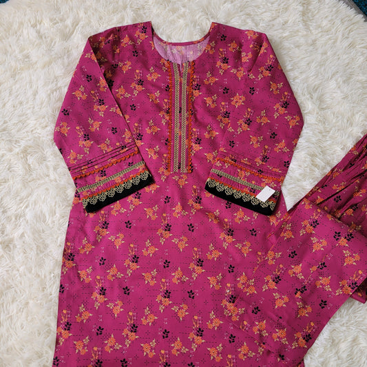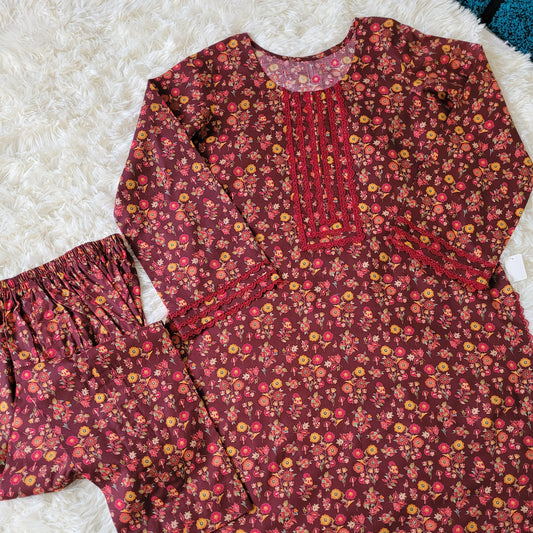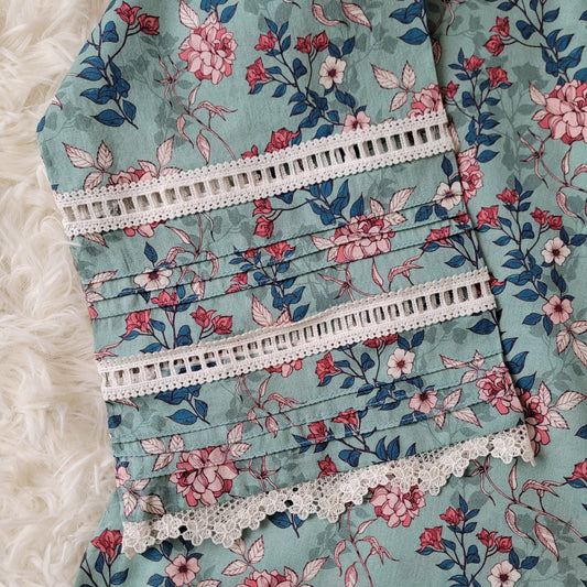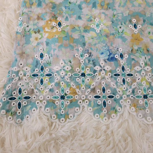 Aqua Floral Delight: Printed Lawn Co-ord Set