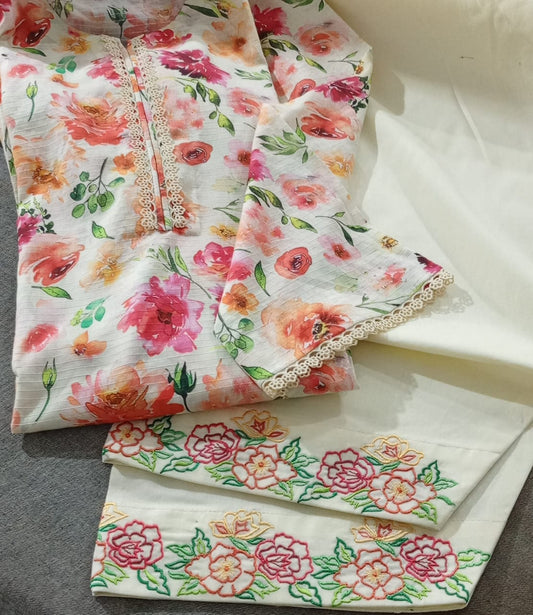 Ivory Bloom: Printed 2-Piece Suit with Floral Embroidery