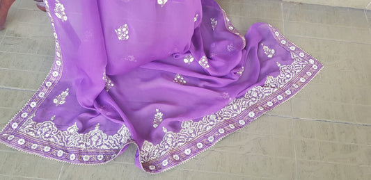 Lavender Sheer Dupatta (Hand Stamped Accents with Metallic Trim)