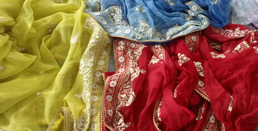 Multicolor Chiffon Dupattas with Hand Block Print & Gota Lace Trim
