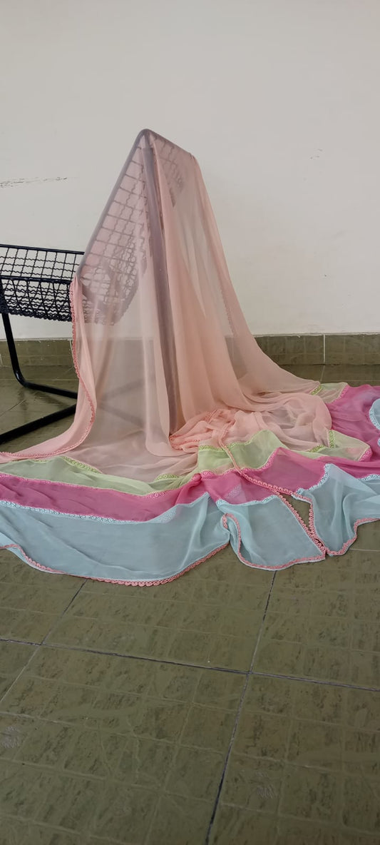 Chiffon Dupatta with Lace Border - Four Colors in one