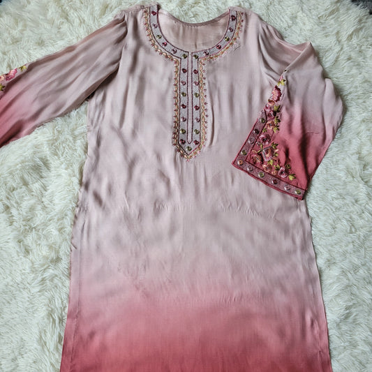 Terracotta Bloom: Embroidered Two-Piece Suit