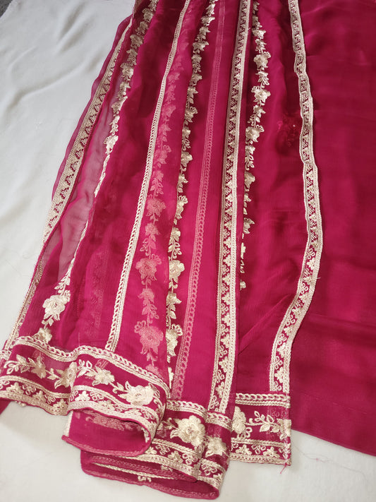 Agha Noor Magenta Gold Embellished Chiffon Dress