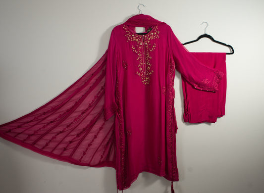 Agha Noor Fuchsia Dream: Ornate Embroidered Chiffon Ensemble