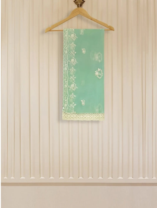 Teal Splendor: Embroidered Crinkle Chiffon & Rawsilk Suit
