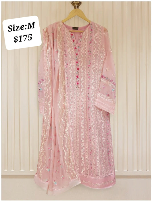 Agha Noor Rose Whisper: Embroidered Chiffon Ensemble with Viscose Trouser