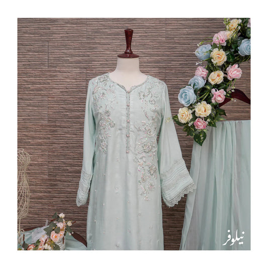 Gul e Bahar: Mint Melody Khaadi Net Suit