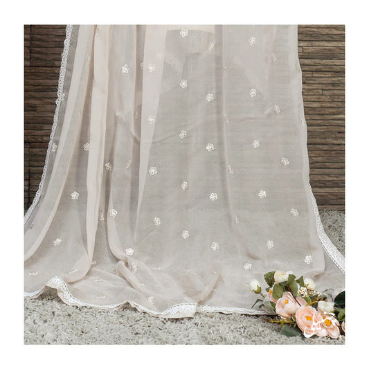 Chambeli Serenity: Embellished Cotton Net Dress with Chiffon Dupatta