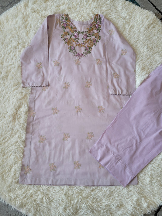 Lilac Garden: Multi-Embroidered Suit with Coordinating Dupatta