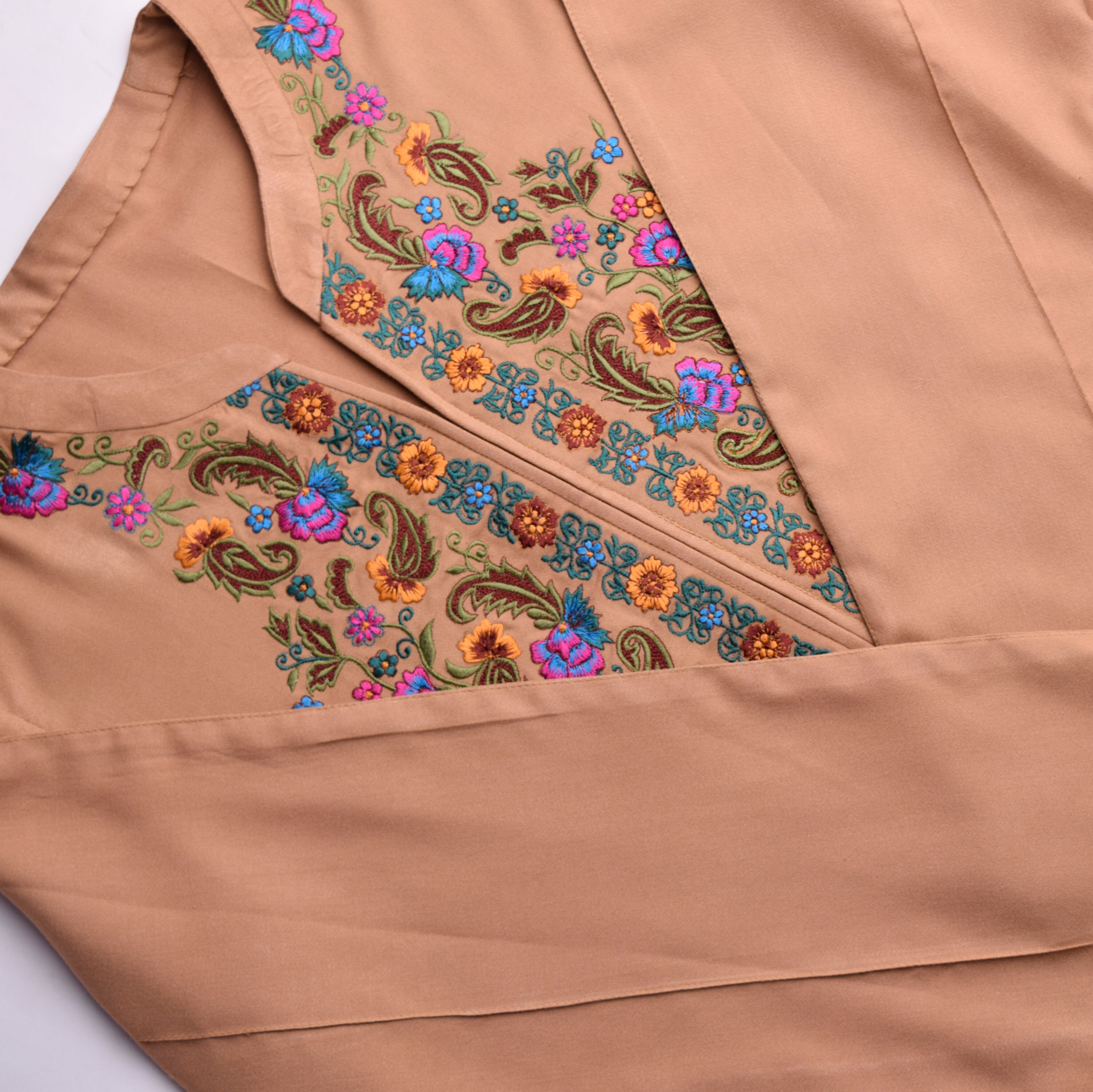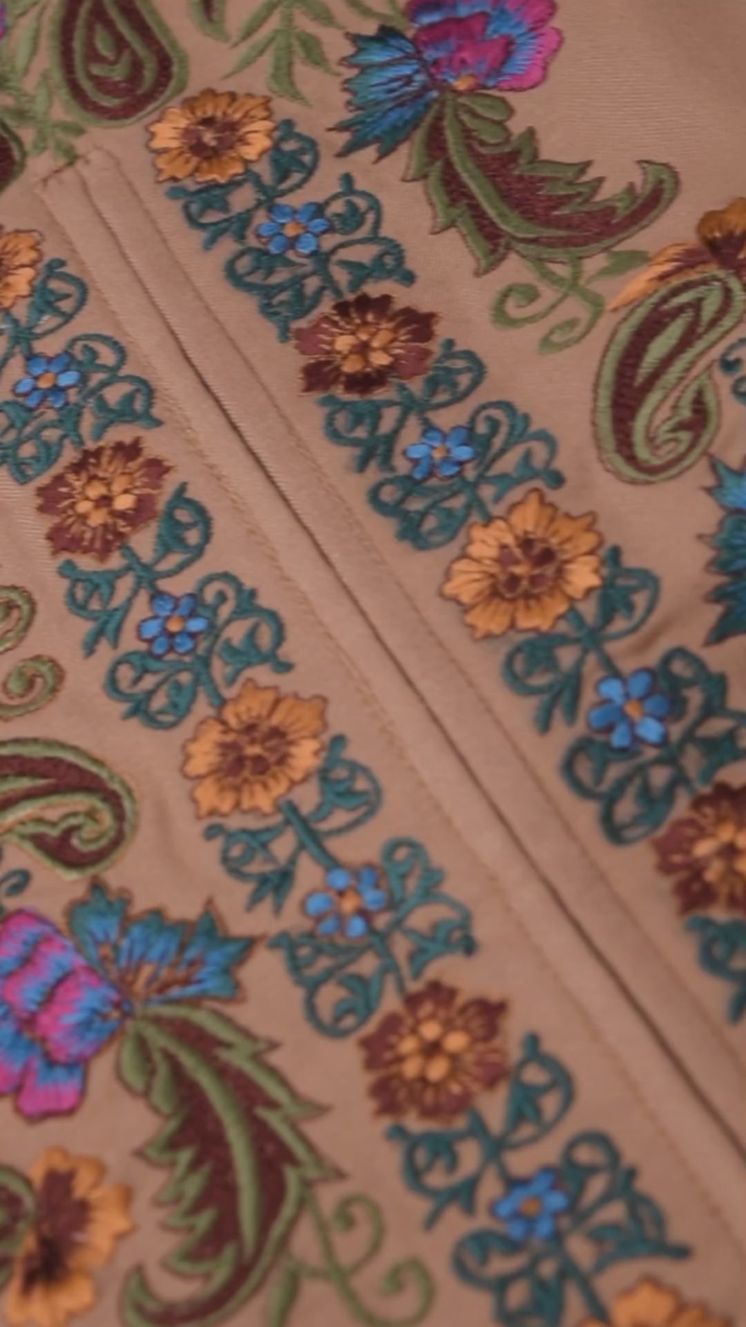 Kurta color: Solid Beige with Multi-Color Embroidery