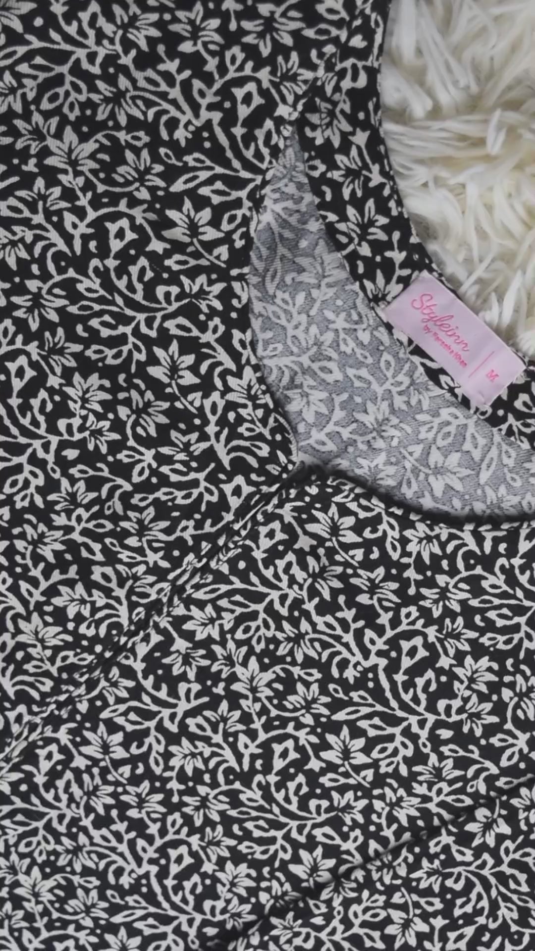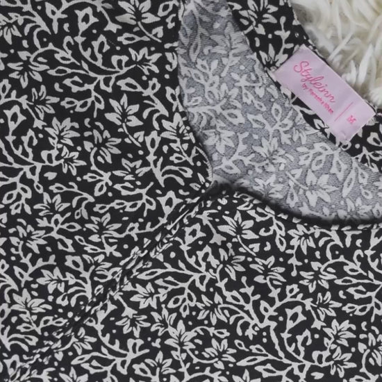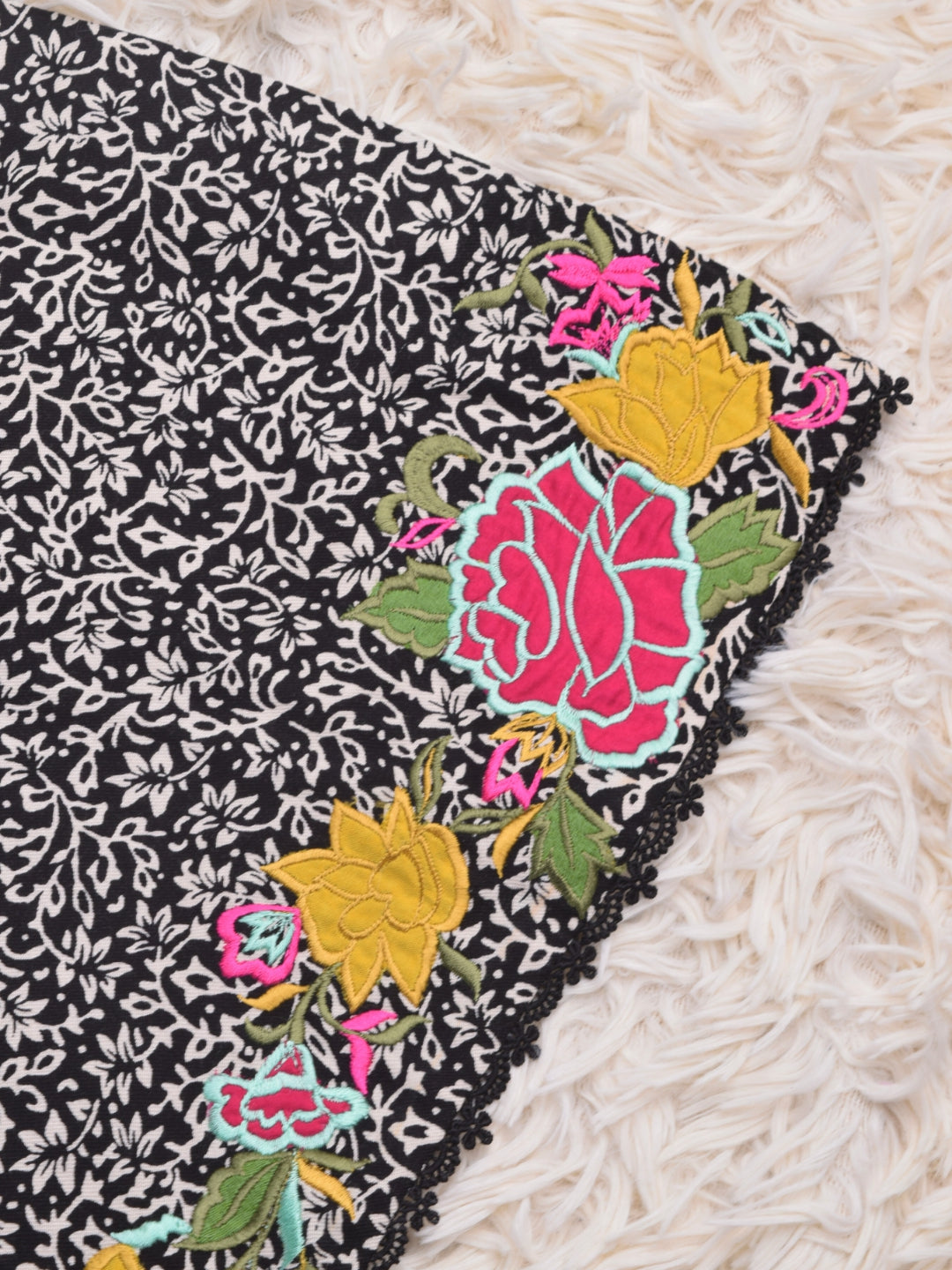 Kurta color: Black and White Floral Print with Multi-Color Applique