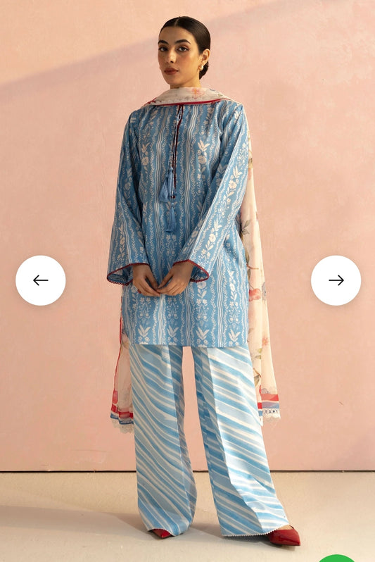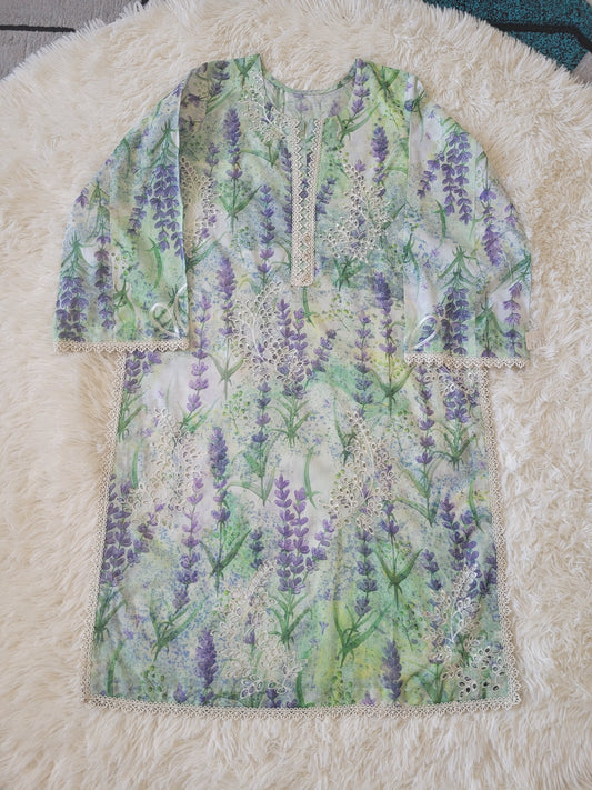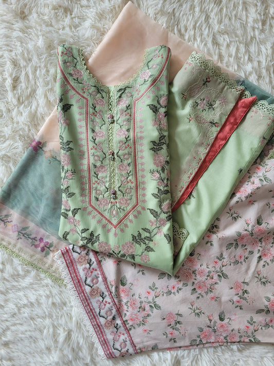 Nureh Green Meadows: Printed Lawn Three-Piece Suit