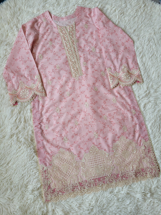 Aabyaan Blush Petals: Embroidered Cutwork Lawn Suit