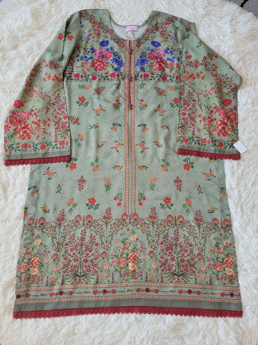 Zara Floral Green Printed Lawn Suit with Chiffon Dupatta