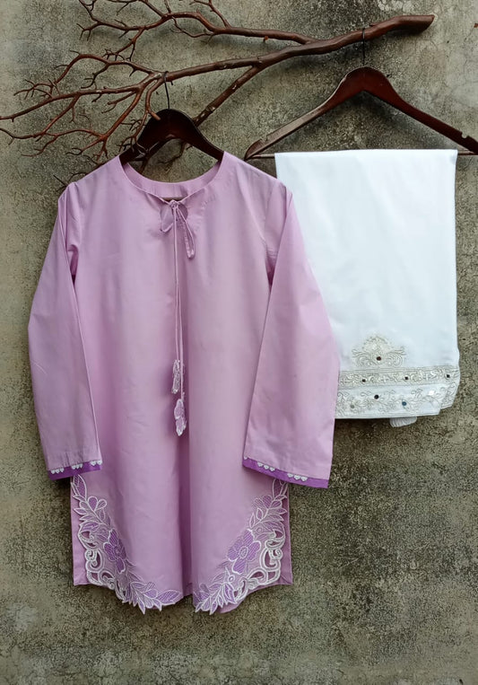 Lilac & White: Embroidered Cotton Two-Piece Suit